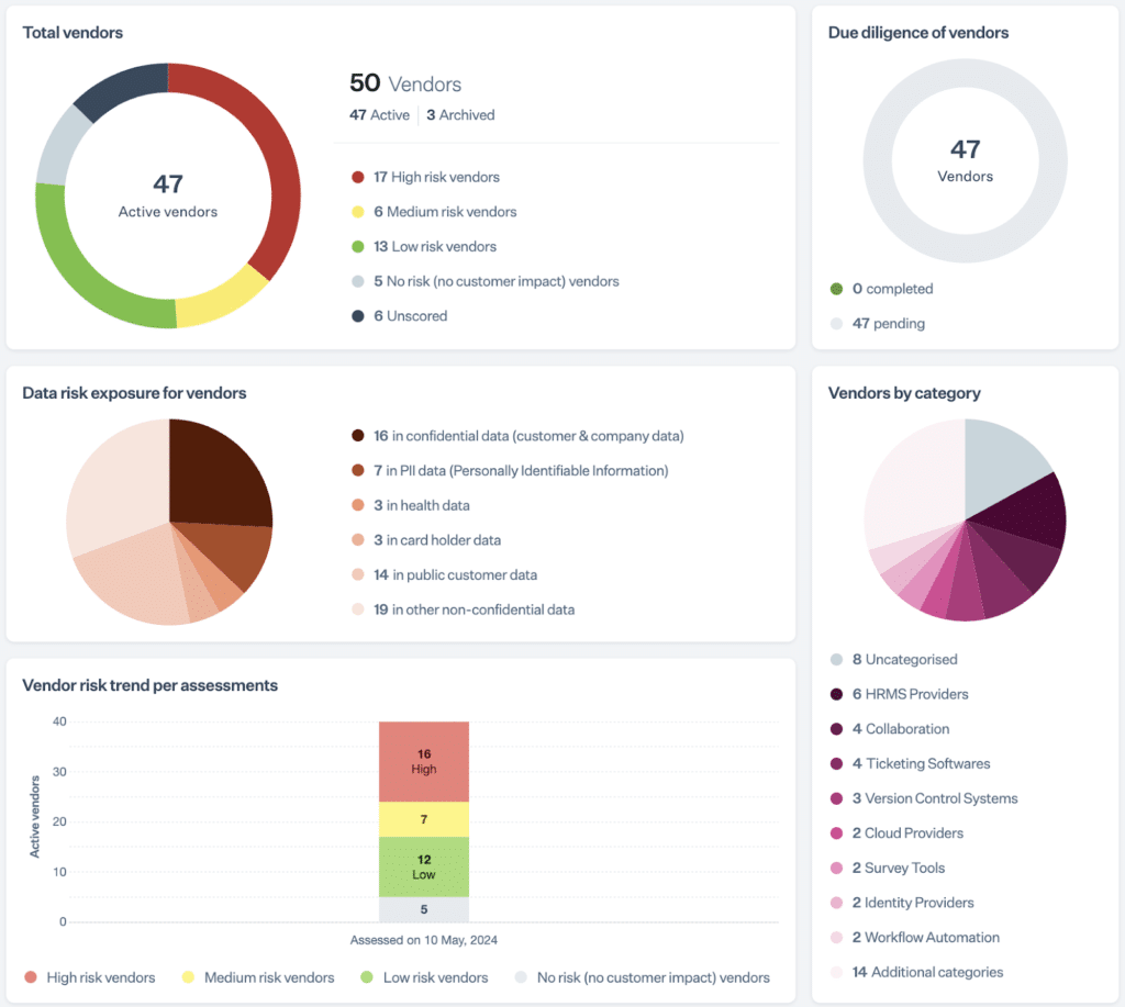 - Review risk, gap, vendor, and health reports from one place