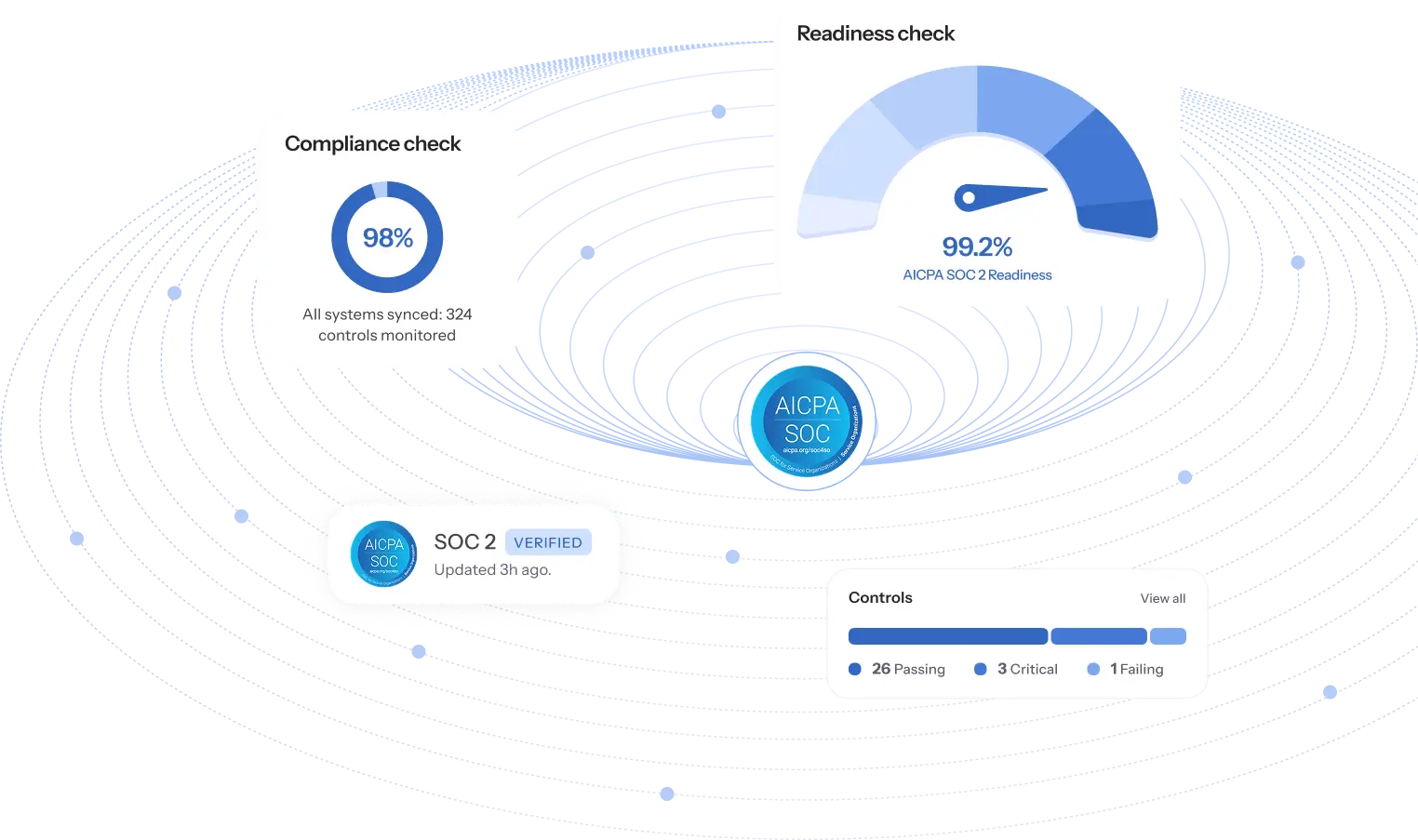 The foundational parts of SOC 2 are built in – policies, people processes, and continuous monitoring – so you don’t spend time assembling the basics.