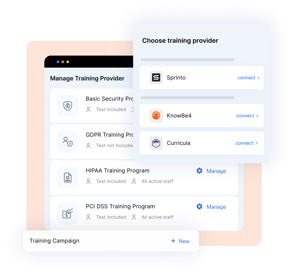 Sprinto’s people-friendly, out-of-the-box training programs can be launched & monitored with ease, directly from the platform. Define training scope, launch target campaigns, monitor progress, and collect training-linked evidence automatically, without hunting for proof.