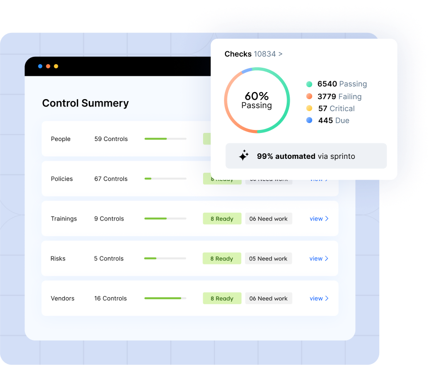 access management, vulnerability tracking, evidencing, and more, Sprinto unifies scattered security